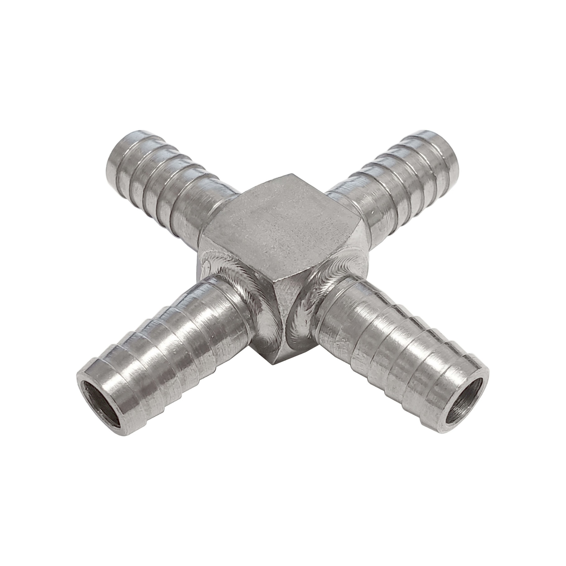 Stainless Steel Hose Barb FittingsCrossTubing I.D. Size: 3/8"